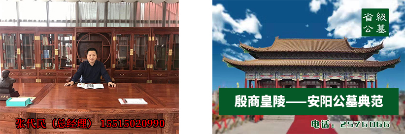 安陽殷商皇陵公墓,2006年2月28日經河南省民政廳批準(豫民文【2006】34號)的合法公墓,國有土地使用證(安國用【51】第1355號),是省重點工程項目。公墓于2008年12月榮獲”河南省十佳陵園”;2009年元月榮獲“安陽誠信之星”;2009年4月榮膺“全犀殯葬行業十佳陵園”稱號,“公墓定位為河南省高端公墓”,“安陽的八寶山”?! 」棺溆诎碴柺旋埌矃^,馬投澗鎮郭大岷村村東鳳凰崗上,占地40000余平方米,距市區6公里,交通方便,道路四通八達。  公墓于2006年成立,起步高,選用碑型、碑石都是行業精品,碑石為花崗巖堅硬耐風化,與當地石材完全不同。產品價格分高、中、低三個檔次,滿足不同客戶的需求,同類產品在合法公墓中定價較低,公墓的經營策略是低價入市,讓利客戶,培養市場,公墓每年的下葬率在行業中屬于較高的了,現場參觀一目了然。